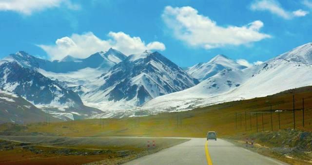 沿途穿越喀喇昆仑山脉、兴都库什山脉、帕米尔高原、喜马拉雅山脉西端,因此,路旁雪山、冰川经常闪现。