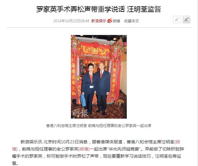 不幸的是到2014年,罗家英肝癌恶化,尽管再一次做手术,但手术影响了声带,这对于唱粤剧的罗家英来说,影响可想而知。