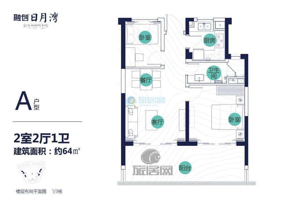 融创日月湾 两房户型 建面64㎡