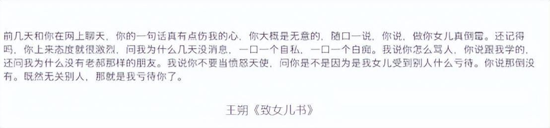 从王朔写的《致女儿书》中可以看出,王朔在网上和女儿聊天,王咪直言说:“做你的女儿真倒霉”,