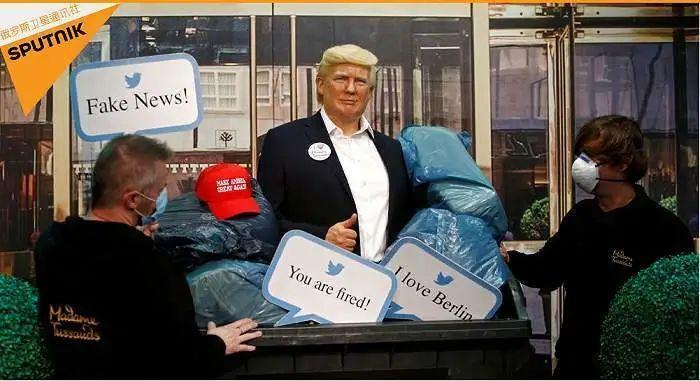 10月30日,美国大选结果还没出炉,德国杜莎夫人蜡像馆就已经把特朗普蜡像“扔进垃圾桶”了,连带着特朗普的口头禅“你被开除了”“假新闻”和标志性红帽子也一起被打包扔掉。博物馆市场经理奥基德称,此举有象征意义,也是为大选结果做准备。