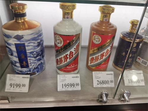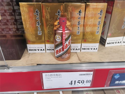 茅台酒玫瑰金,相对稀缺的,500ML,价格:4159元 现场看这个玫瑰金颜值比较好,适合收藏。