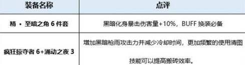 无言的建设者:卢克每日制作,在卢克地下城伤害提升可观。三个单件都是不错的强散,且具有套装属性,缺点是制作时间长。