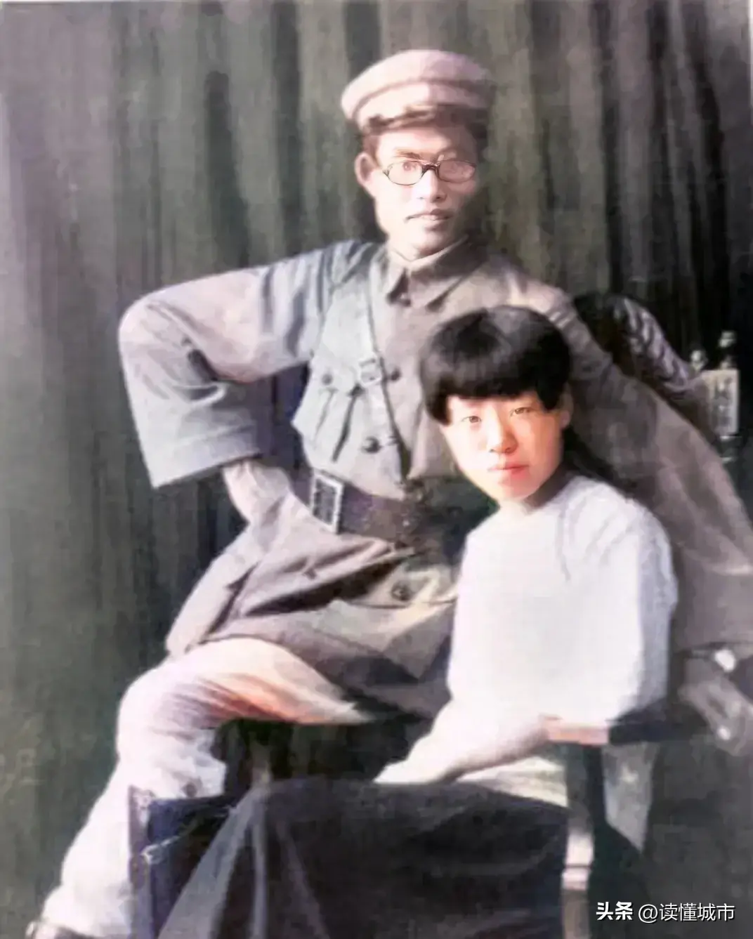 一张珍贵老照片,第一次见该照片拍摄于1927年左右,照片中,两位主人公是肖劲光和妻子朱仲芷,这张照片极其罕见,也是第一次见。肖劲光和妻子朱仲芷两人相识于武汉,武汉是他们的相爱之地,婚后两人育有四子两女,后来因为聚少离多,感情不和等原因,最终两人的爱情不疾而终,值得一提的是,他的妹妹朱仲丽是王稼祥的夫人,这样一来,王稼祥和肖劲光是两桥关系。