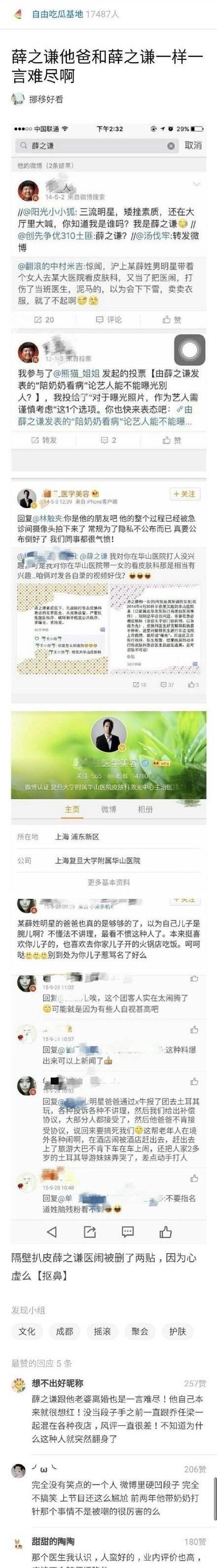 薛之谦医闹已经迅速登上微博热搜榜第一。围观网友们也纷纷表达不同的看法,有人认为这么多几年前的截图足以证明,也有人认为截图并不能当做事件的实锤。