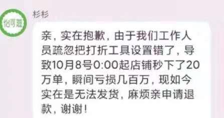 像前天“百香果”事件的BUG神车,两个小时就几十万的订单,虽然是赔偿车,但老板也赔不起呀,第二天商铺就倒闭了。(我没有买,对这些小的店铺不感兴趣。)