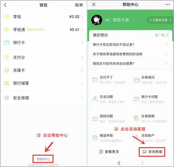 在界面的下方点击帮助中心,然后点击咨询客服。