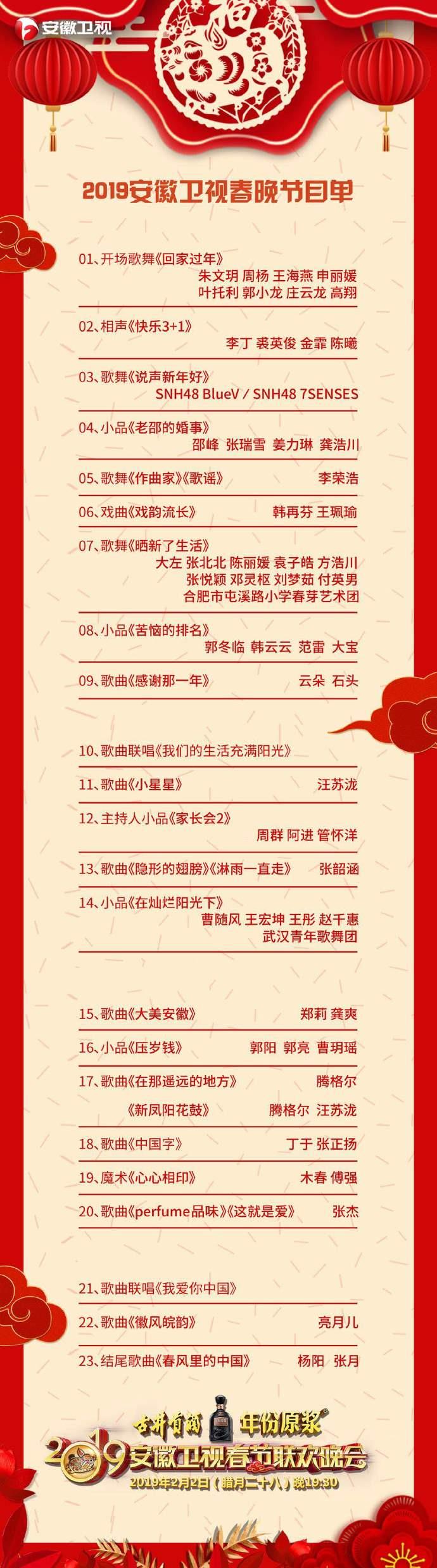今晚山东卫视和安徽卫视春晚已经开播,后面有节目单。