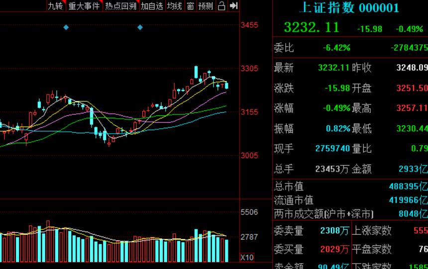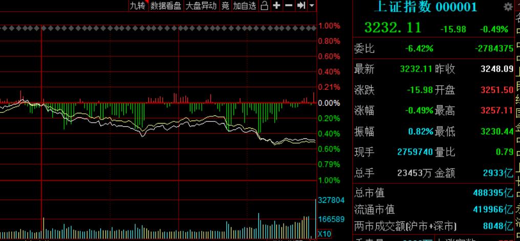 今天大盘方面上证指数跌0.49%,深圳指数跌0.62%,创业板指数跌0.48%