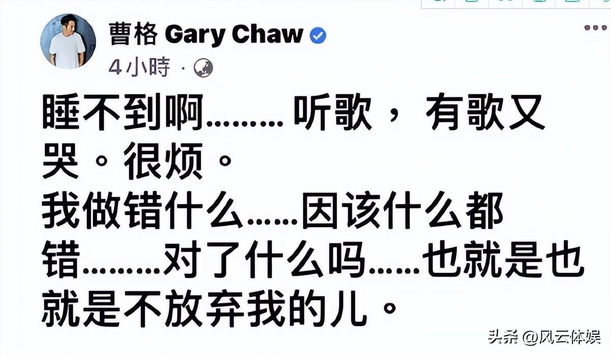 不管是出席活动还是参加综艺,都可以看出曹格对老婆吴速玲的宠爱。反观吴速玲是有点冷淡的,所以当他那些发疯似的动态一出来,大家都觉得是吴速玲真的做出了对不起曹格之事。所以逼得曹格有了激烈情绪的波动。经过了一段时间的冷静,两人还是选择了分开,在各自的社交媒体上官宣了离婚。本以为离婚的结局收场后,此事就算是平息了。没想到,一条动态却又引起了一场舆论。