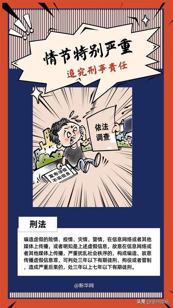《刑法》第二百九十ー条之一规定,编造虚假的险情、疫情、灾情、警情,在信息网络或者其他媒体上传播,或者明知是上述虚假信息,故意在信息网络或者其他媒体上传播,严重扰乱社会秩序,处三年以下有期徒刑、拘役或者管制;造成严重后果的,处三年以上七年以下有期徒刑。