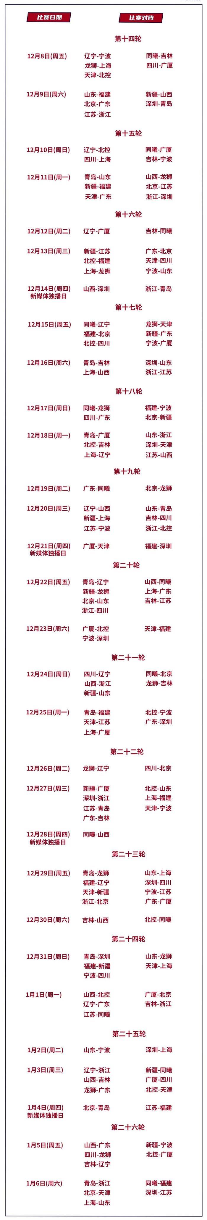 CBA新赛季赛程发布,山东男篮10月23日首战广州龙狮