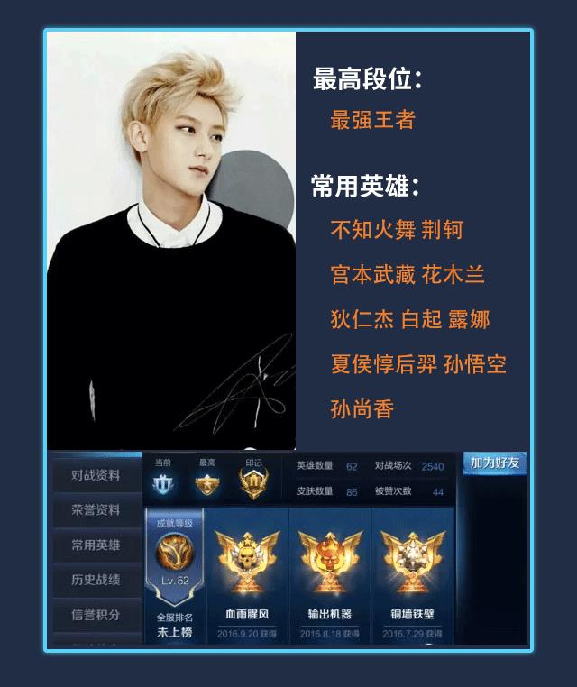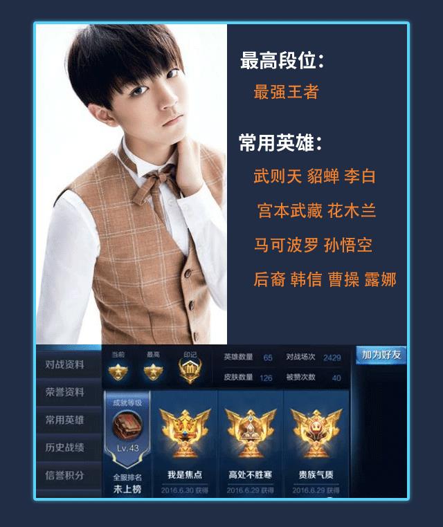 最强王者段位,TFBOYS组合成员王俊凯也是《王者荣耀》的资深玩家,曾经四个赛季都是王者段位。