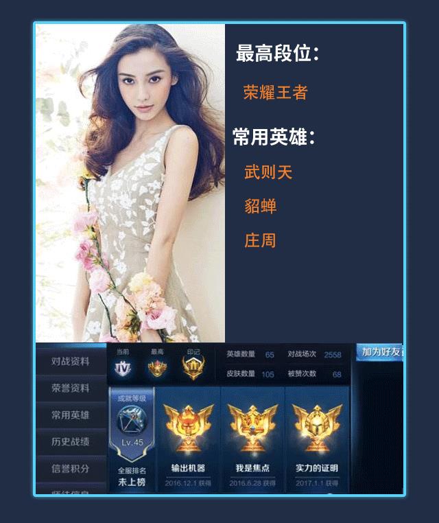 荣耀王者段位,众所周知,Angelababy是一名不折不扣的“网瘾少女”。baby
