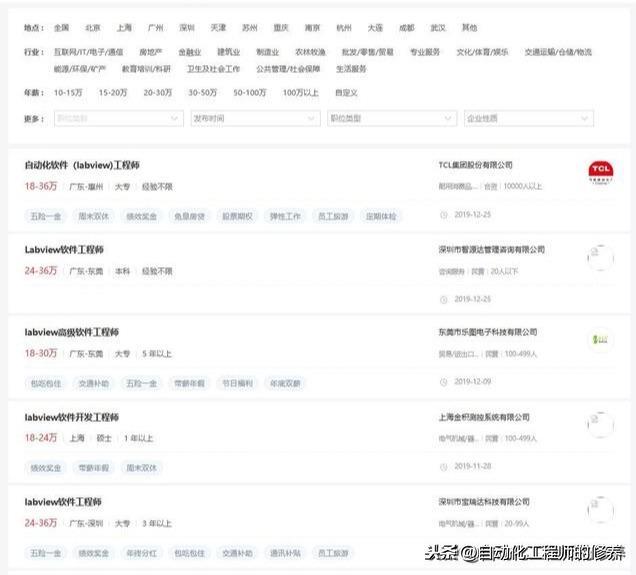 以上我们可以看到LabVIEW工程师主要还是存在于非标自动化行业,这个行业随着我国制造业的不断壮大,孕育出了许多比较厉害的公司。