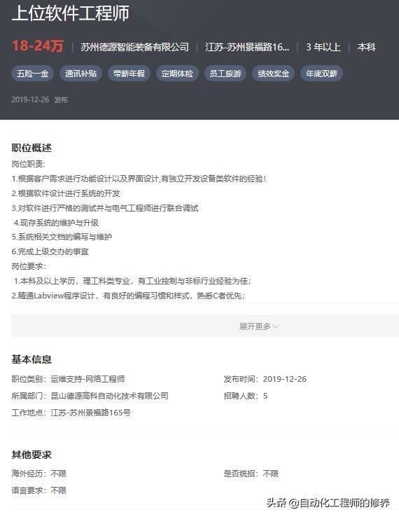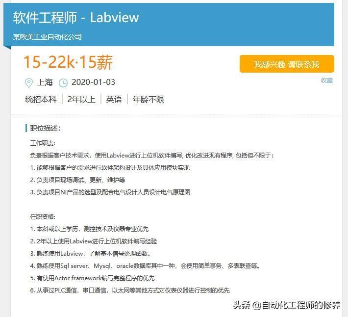 那想要成功应聘LabVIEW工程师需要具备哪些技能呢?我们随意点开两个职位,看一看职位要求是什么。