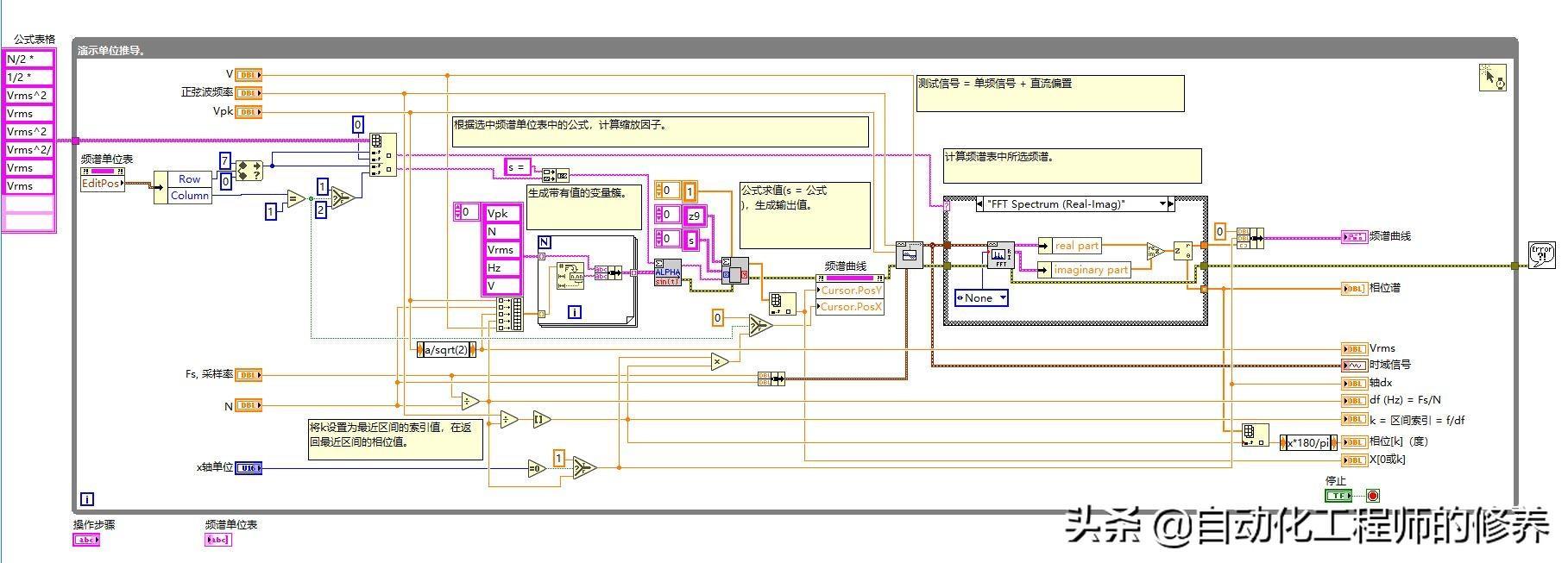 传统文本编程语言根据语句和指令的先后顺序决定程序执行顺序,而LabVIEW则采用数据流编程方式。在数据流编程方式下,数据在程序框图节点中的流动决定了VI和函数的执行顺序。VI (virtual instruments)指虚拟仪器,是可模拟物理仪器的LabVIEW程序模块。