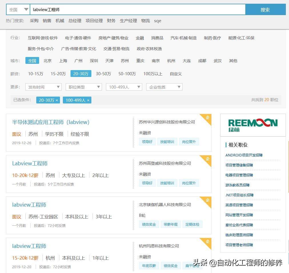 那么LabVIEW工程师在国内的薪资状况又如何呢?我到某聘网上输入了LabVIEW工程师,跳出了如下窗口。