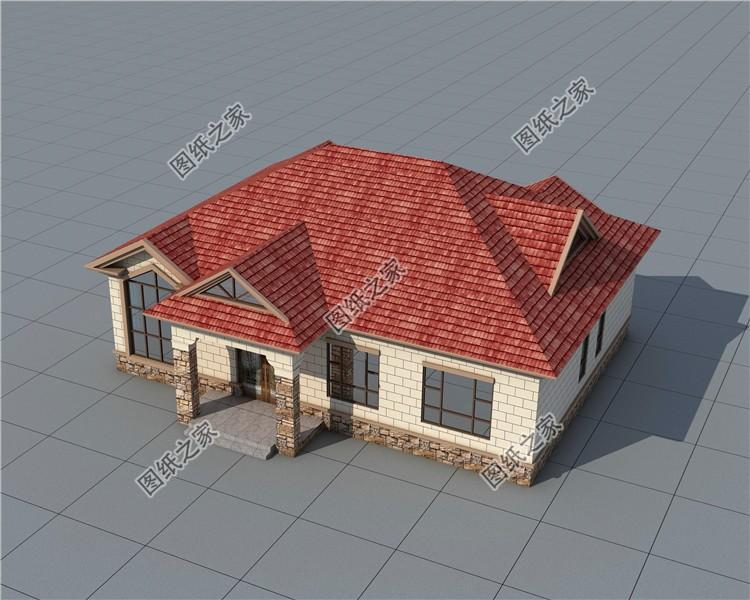 款式二:农村一层半别墅设计图,占地160平米左右,带阁楼