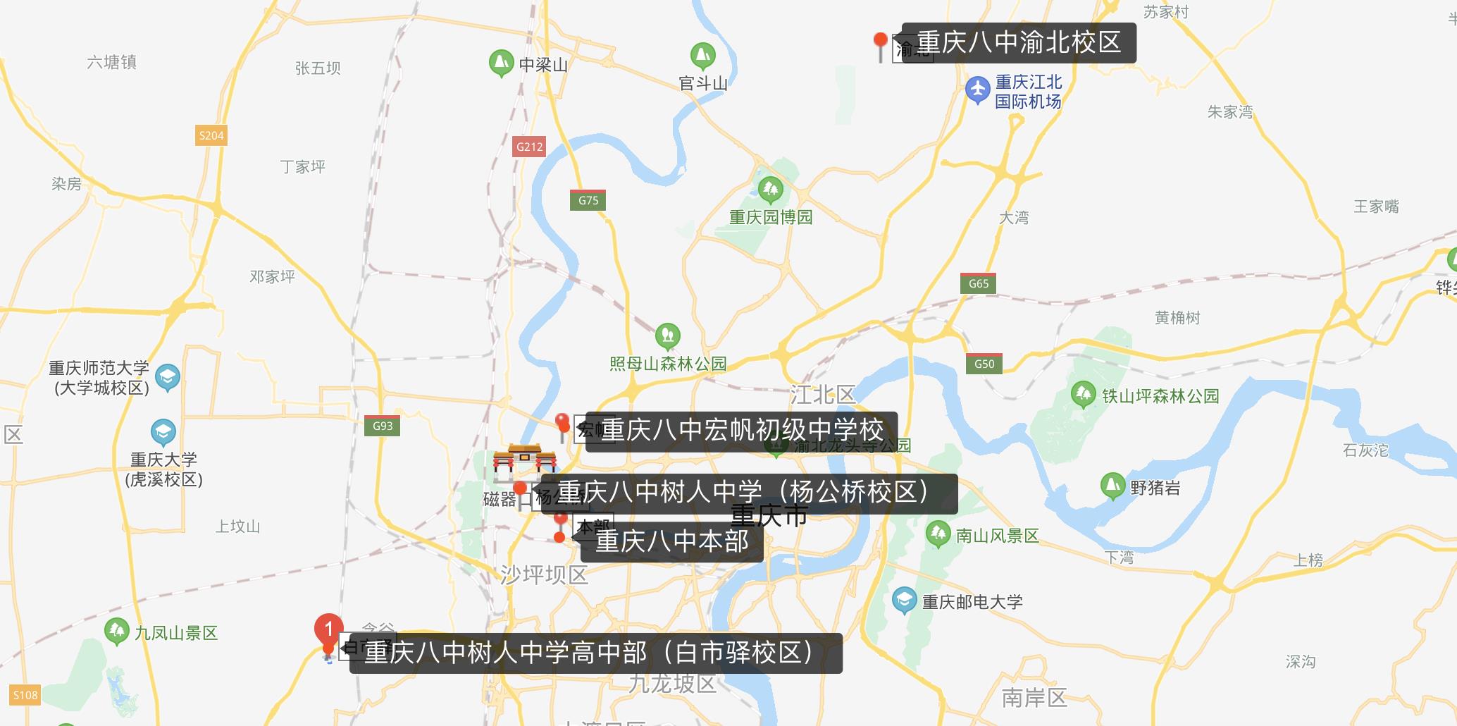 重庆八中各分校分布情况