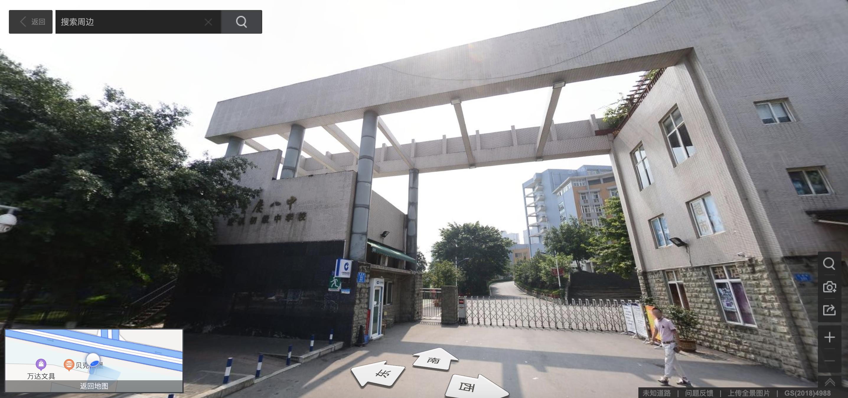 八中本部位于沙坪坝区小龙坎正街96号,目前只有初中部,高中部在渝北校区。