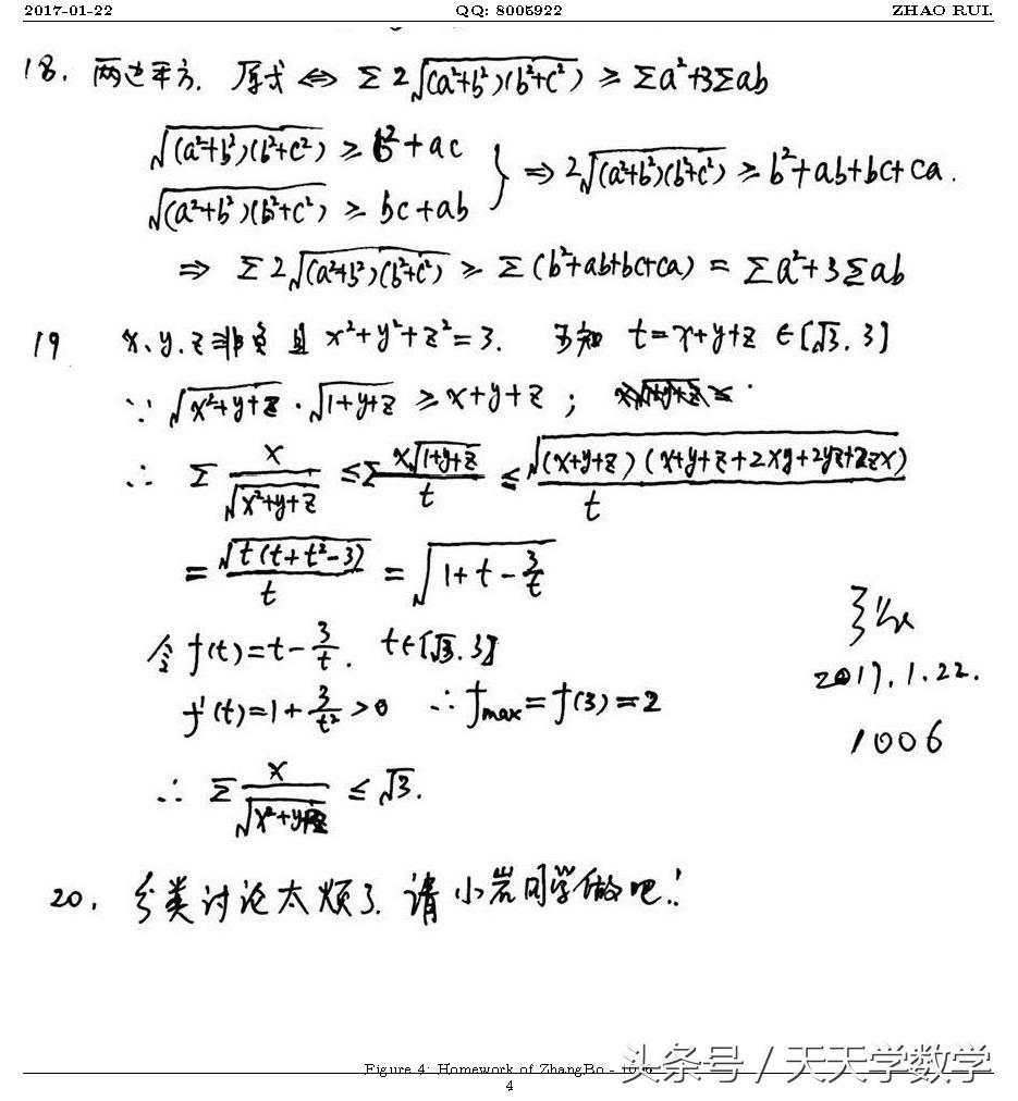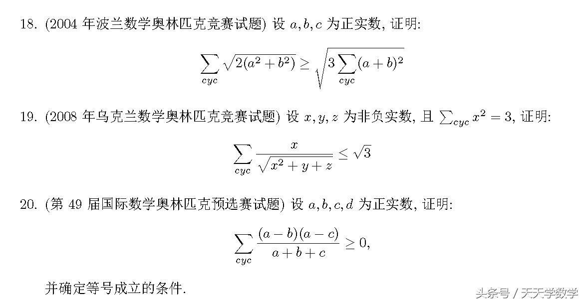 Muzhi:(竞赛牛人)muzhi大神这两题基本上就是基本不等式和柯西(Holder)不等式!当然这个变换的技巧也是需要一定功力的!