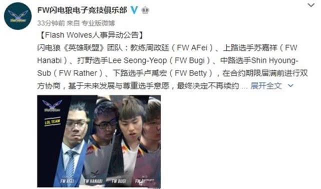 而最近,LMS赛区发生了类似的事件——FW五名成员全部离队。FW,全名闪电狼战队,是LMS赛区常年冠军热门。如今,随着战队成员纷纷离开,闪电狼也就地解散。