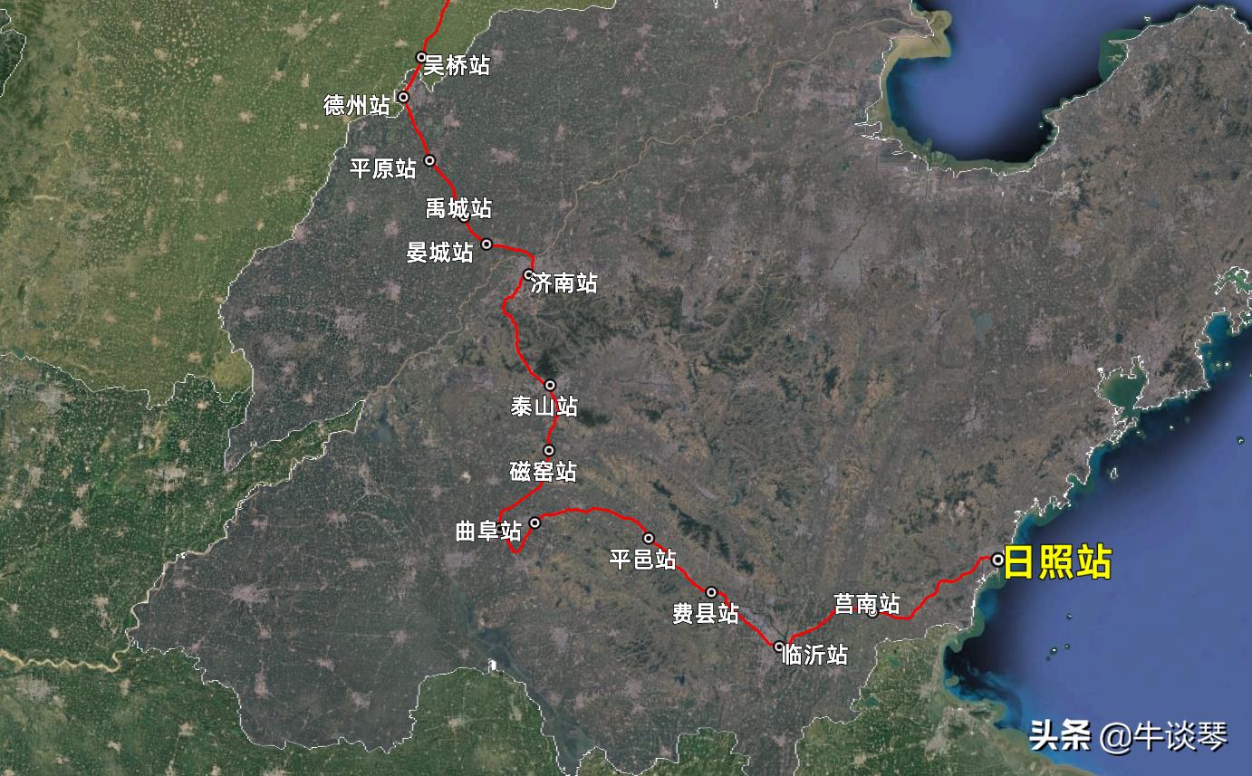 K1450次列车运行线路图:山东日照开往牡丹江,全程2419公里