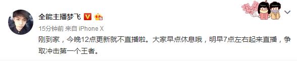 梦飞的努力也得到了大家的认可,在虎牙直播不到一个半月,就虏获了66万粉丝,最高一天增长2万粉丝,成长速度惊人,看来梦飞是剑指虎牙王者荣耀一哥。梦飞在直播间承诺粉丝S10赛季第一天早上7点就起床直播冲新赛季王者,究竟能否是第一批上王者的玩家,让我们拭目以待!