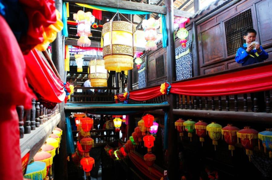 建在古街中部的荣盛魁,外形像是一艘建在陆地上的巨舰,故而又称旱船屋,这可称得上是青木川仅此于魏氏老宅的保存完好的地标建筑了。这是一座三层建筑,里面是层层包厢,分级别设有门牌号,雅座正对着花魁表演的台子,是名流雅士消遣娱乐的声色场所。