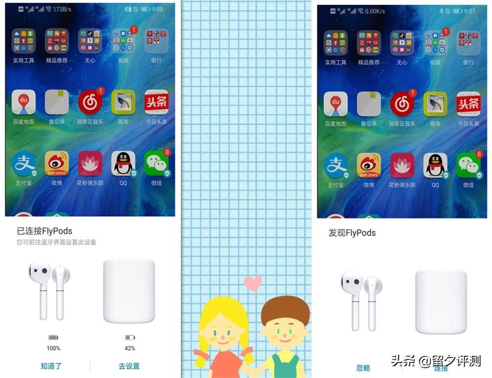 荣耀FlyPods与手机通过蓝牙连接,首次使用时,充电盒为关机状态,长按功能键开机后,手机(需是EMUI9.0系统)就会弹出了连接的画面,点击连接后,就可以完成耳机与手机的配对操作,非常的方便。完成配对后,之后每次打开盖子,手机都会自动连接。