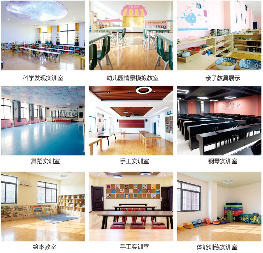 爱婴拥有非常完善的教学设施,五百多架钢琴、十多个幼儿情景模拟高端实训室、五百平米以上的素描绘画实训中心、三千平米以上的舞蹈实训中心,另外每间教室多媒体教学系统,空调,投影仪一应俱全,钢琴实训室集试、听、练为一体, 有效实现了教学的主观化和立体化模式,为学生上课提供了优越的条件,堪称省内一流。