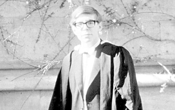 1959年17岁的霍金入读牛津大学的大学学院攻读自然科学,用了很少时间而得到一等荣誉学位,随后转读剑桥大学研究宇宙学。