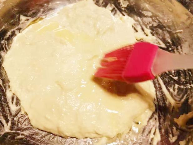 想吃又软又蓬松的馅饼怎么做?其实和上面那个做法是一样的,不过区别就是这次是用的发酵过的面团。和面时面粉中加入一勺白糖,温水中加入酵母,然后一边用筷子搅拌面粉,一边加酵母水搅拌成湿性面团,和刚才一样插入筷子不会倒的稠度就可以,然后开始发酵面团至蜂窝状就可以了。