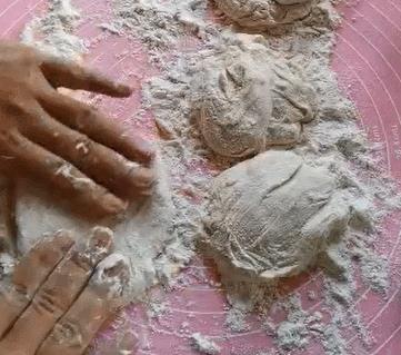 使用方法也是同上,在面板上撒一层厚厚的面粉,直接把面团倒在面板上整理成长条状。然后切成同等大小的面剂,最后包入馅料做成生胚,下锅烙至两面金黄就可以了。这样做出的馅饼喧软蓬松,凉了也不会变硬,口感很好,并且容易消化,家中有老人和孩子的建议做这种发面的。这种的面团用来做甜的,肉的,素馅的都可以。