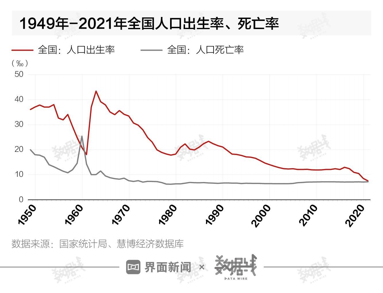 那么,到底问题出在哪?界面数据在统计了历年人口出生率、死亡率数据后发现,人口增长率大幅下跌,“主要问题”在出生人口上。
