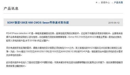 作为一款摄像头的心脏,索尼的IMX298自然是受到很多人关注的,不过较为可惜的是小编在索尼官网上并没有查询到IMX298的相关信息,好在小编经过不懈的努力,在Google的帮助下搜寻到了一些关于索尼IMX298传感器的相关信息:索尼IMX298传感器发布于去年6月,CMOS单元感光面积为1/2.8英寸,单位像素尺寸1.12μm,最高支持像素1600万,最大可以提供尺寸为4608*3456分辨率的图像输出。比较有特色的是,索尼IMX298传感器采用了RGBW四色构架,支持PDAF相位对焦功能。