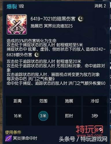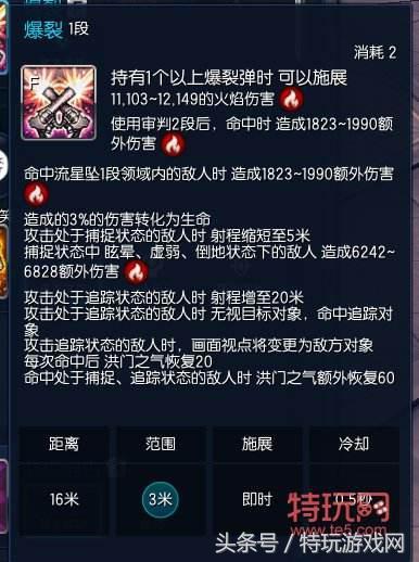 2段 消耗 4内 命中后增加 4层 热负荷 buff50层后生成一个 爆裂弹 buff(存在30秒)较高几率捕捉弱点(几率确实高了很多,但是很耗内...)【跟前面暗系篇一样,2段适合于PVP,个人见解】