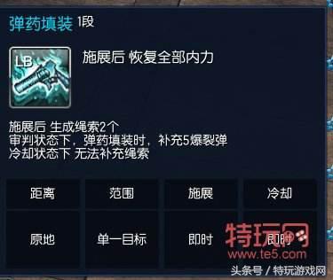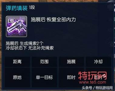 左键 弹药填装(LB) 无CD 立即施展 恢复全部内力 有后摇