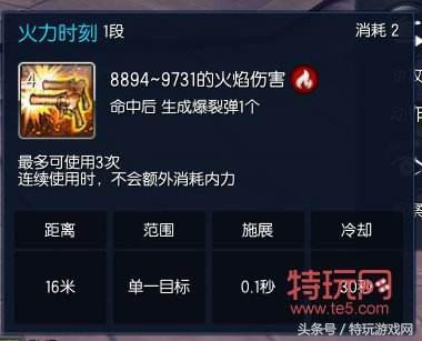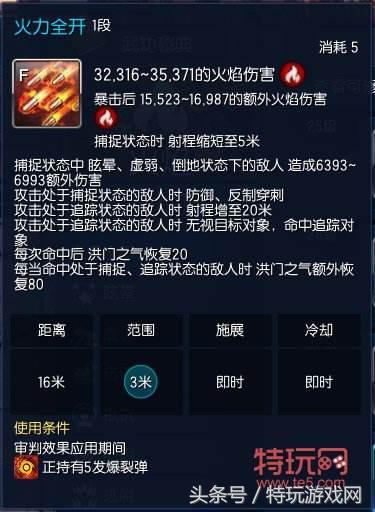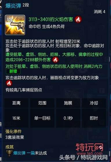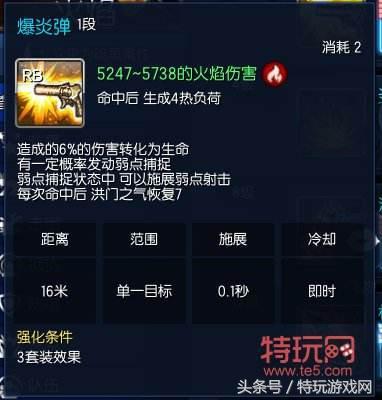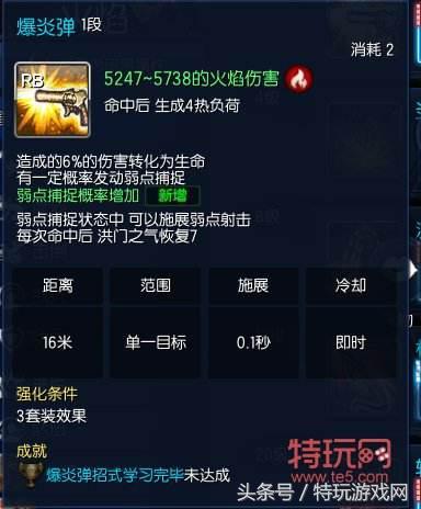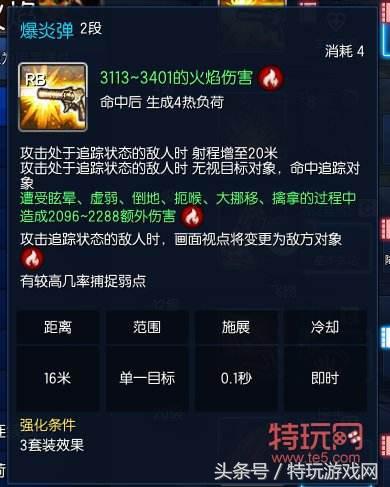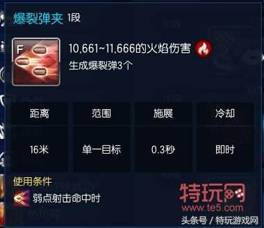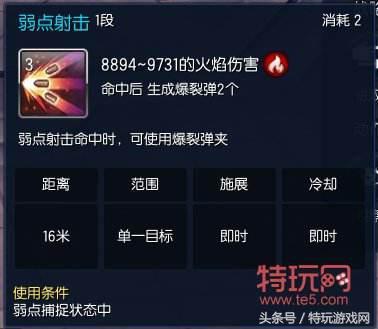 1段 消耗 2内 一定几率触发 弱点捕捉 buff(持续2秒) 命中后增加 4层 热负荷 buff50层后生成一个 爆裂弹 buff(存在30秒)秘籍增加弱点捕捉概率