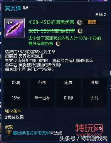 1段 消耗 2内 命中后增加 1层 冥界炎流 buff冥炎破(4)减CD 秘籍增加伤害