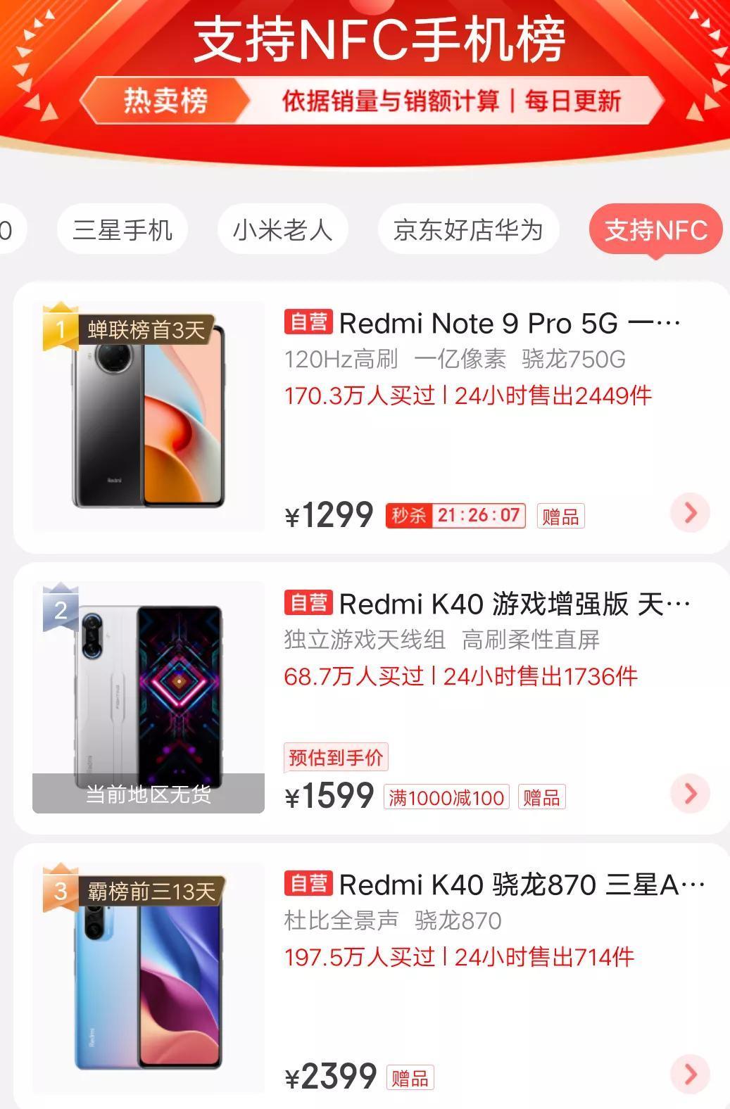 从上图可以看出,带有NFC功能D3热卖机型三款都是Redmi的机子,都很具有性价比。