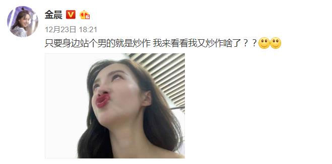 显然网友们不想放弃这个嘲讽金晨的机会,引得金晨愤怒不已的在社交平台上发文:“只要身边站个男的就是炒作 我来看看我又炒作啥了?”