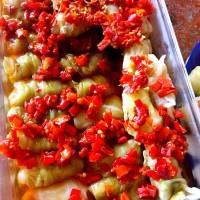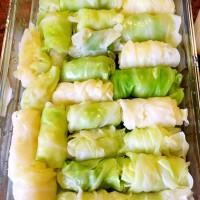 8.把卷好的包菜排放整齐在玻璃密封盒里。