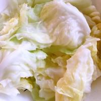 3.用热水焯一下包菜,然后沥干。