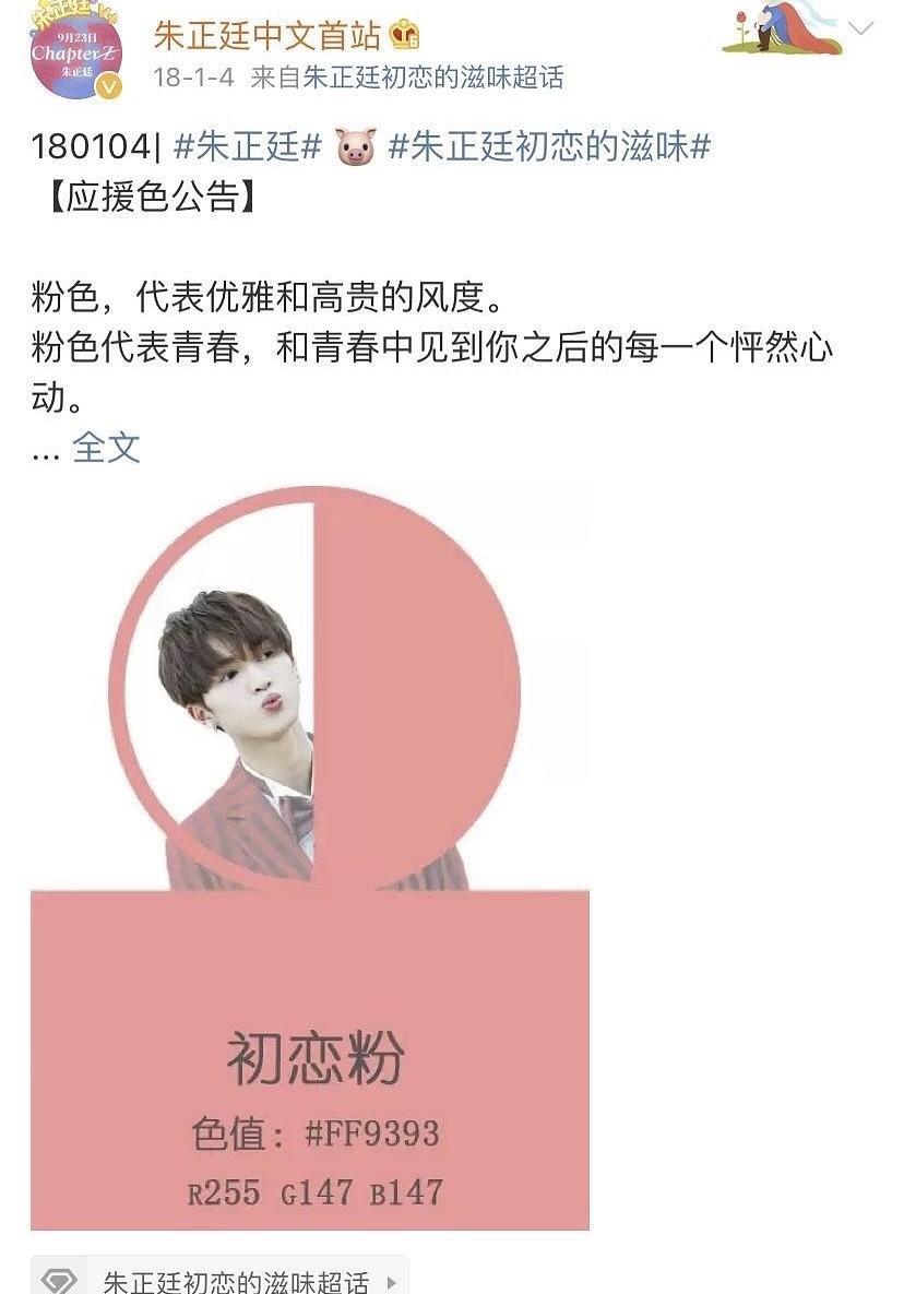 众所周知,朱正廷的粉丝应援色是粉红色,这是早在2018年年初就确定了的事情。