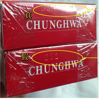 图3:真烟条盒端部“中华”二字边缘处无锯齿;假烟条盒端部“中华”二字边缘处锯齿明显。