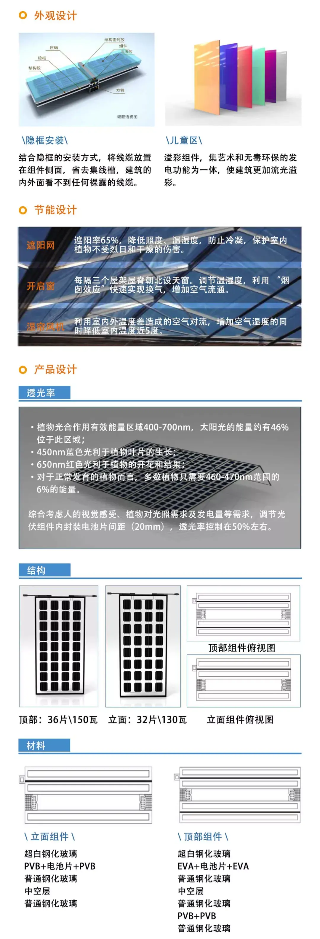 电谷城市低碳公园位于保定市北二环与北三环之间,是亚洲最大的光伏温室公园及城市综合体。其建筑屋顶和外墙的太阳能电池板全部采用嘉盛光电自主研发与生产的光伏幕墙产品“琉璃”系列,创新了光伏建筑一体化应用形式,实现了光伏与建筑的完美融合。秉承“低碳”的核心理念,低碳公园引入了椰子树、芭蕉等百余种热带亚热带植物,打造出了北方的小南国,是光伏与农业、服务业、科教、娱乐健身、休闲旅游等有机结合的城市综合体。