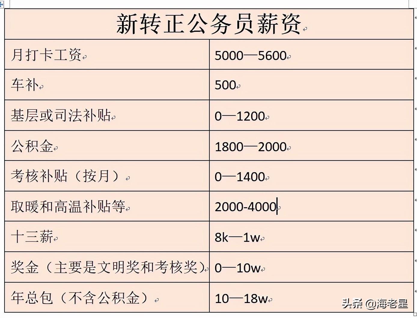 4.某区新进公务员:本科,转正后每月打卡工资5000,公积金一个月双边2000,年底十三薪7000,未休假补贴加考核奖30000+,一年全包12左右。
