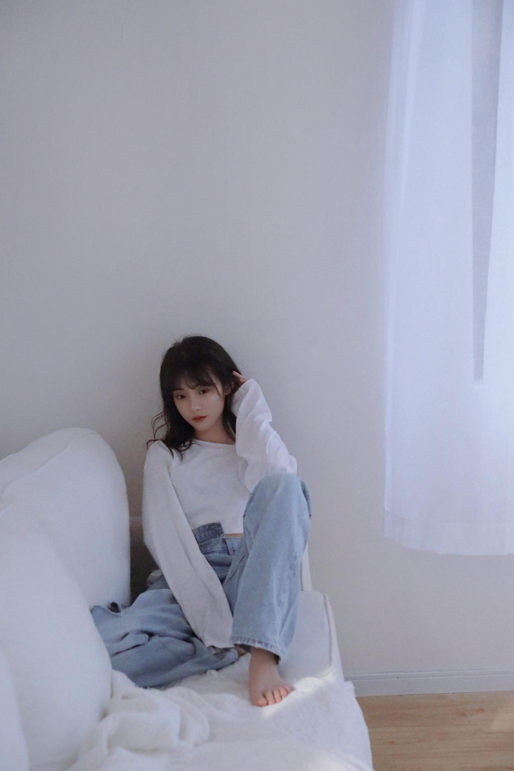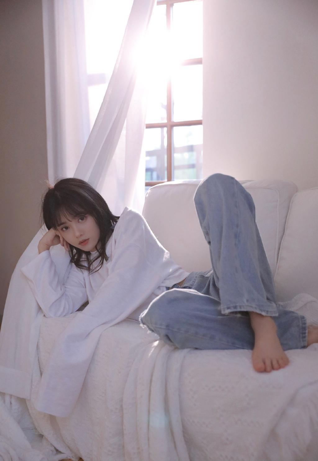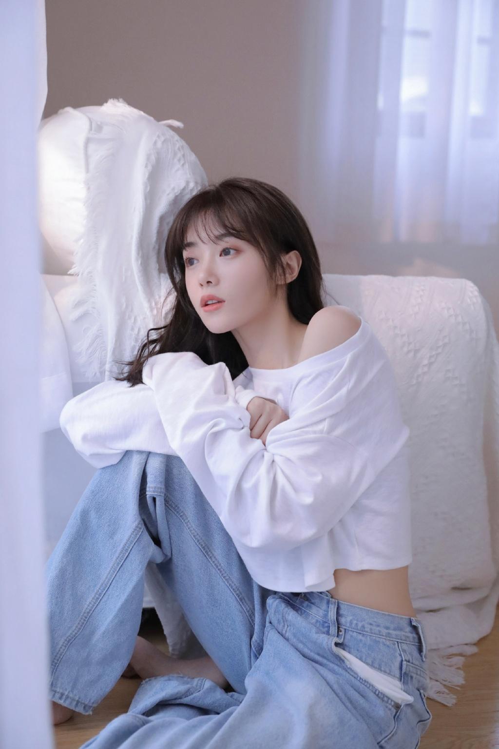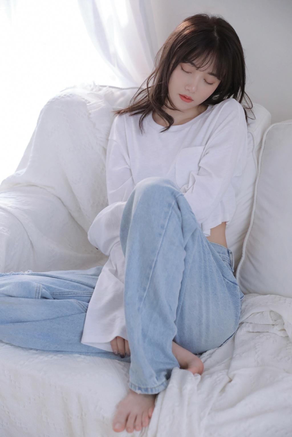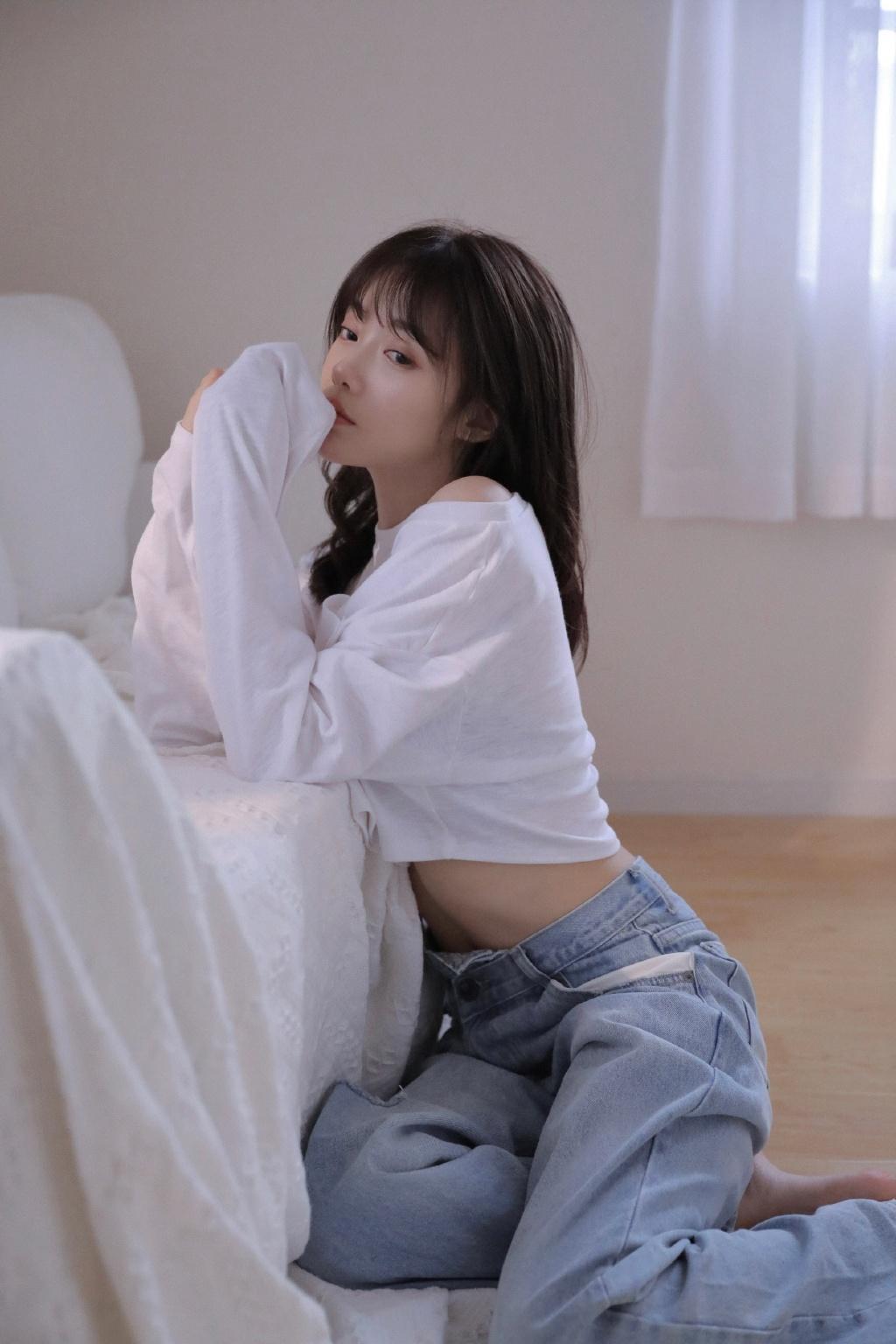 上图,小编觉得这位小姐姐颜值很不错呢,标致立体的五官,黑色长发,白色上衣搭配宽松牛仔裤,整体感觉是一种休闲舒适的状态,而且这组私服照让人看起来很舒服,有邻家少女清纯可人的美感。